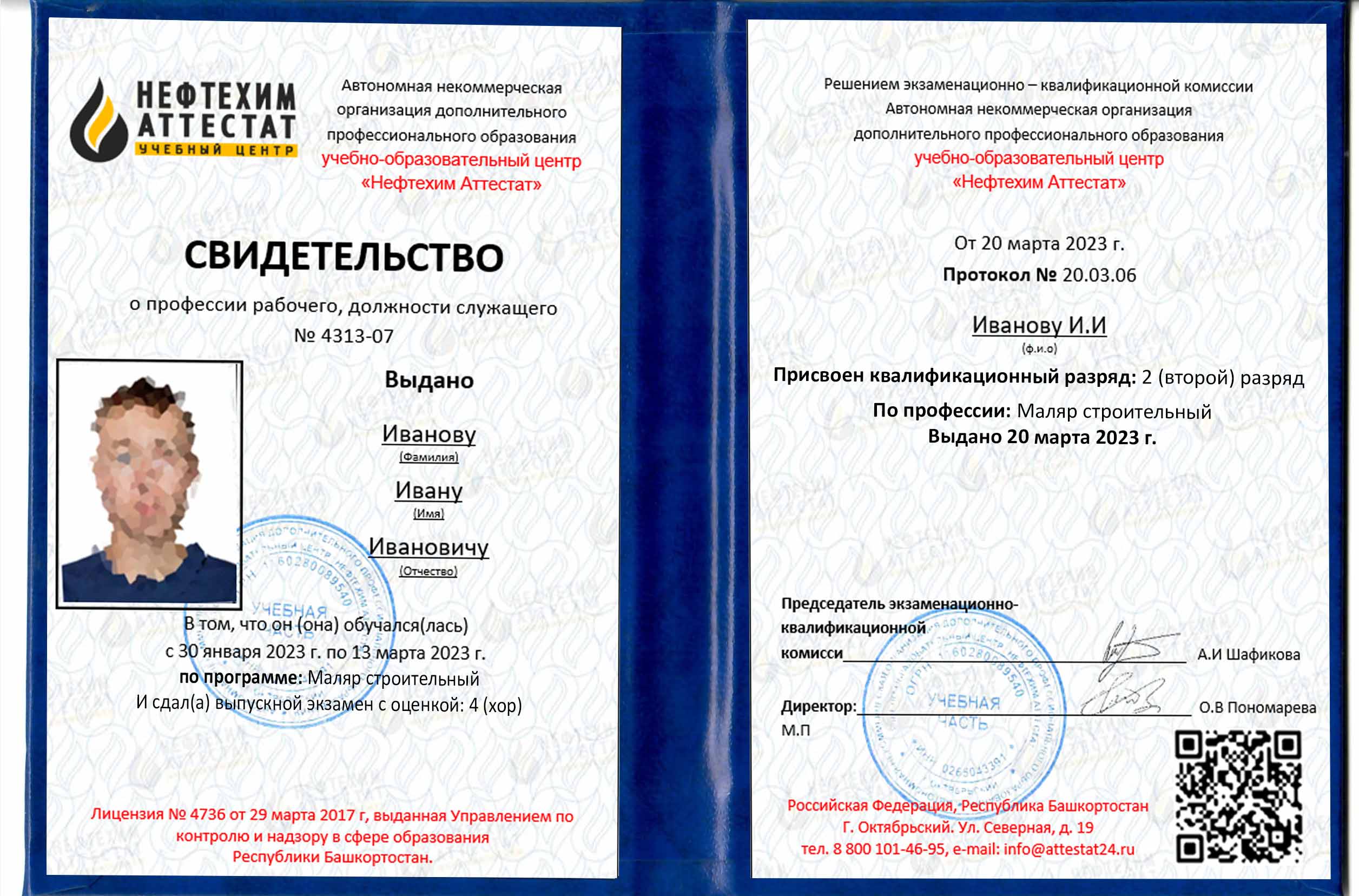 Имеем право на осуществление образовательной деятельности. Автономная некоммерческая организация дополнительного профессионального образования Учебный центр «Нефтехим Аттестат» осуществляет образовательную деятельность на основании лицензии от 29 марта 2017г. № 4736, выданной управление по контролю и надзору в сфере образования Республики Башкортостан.